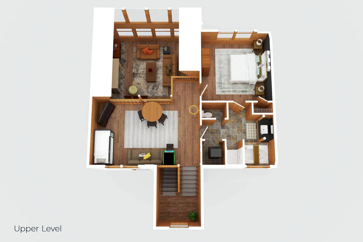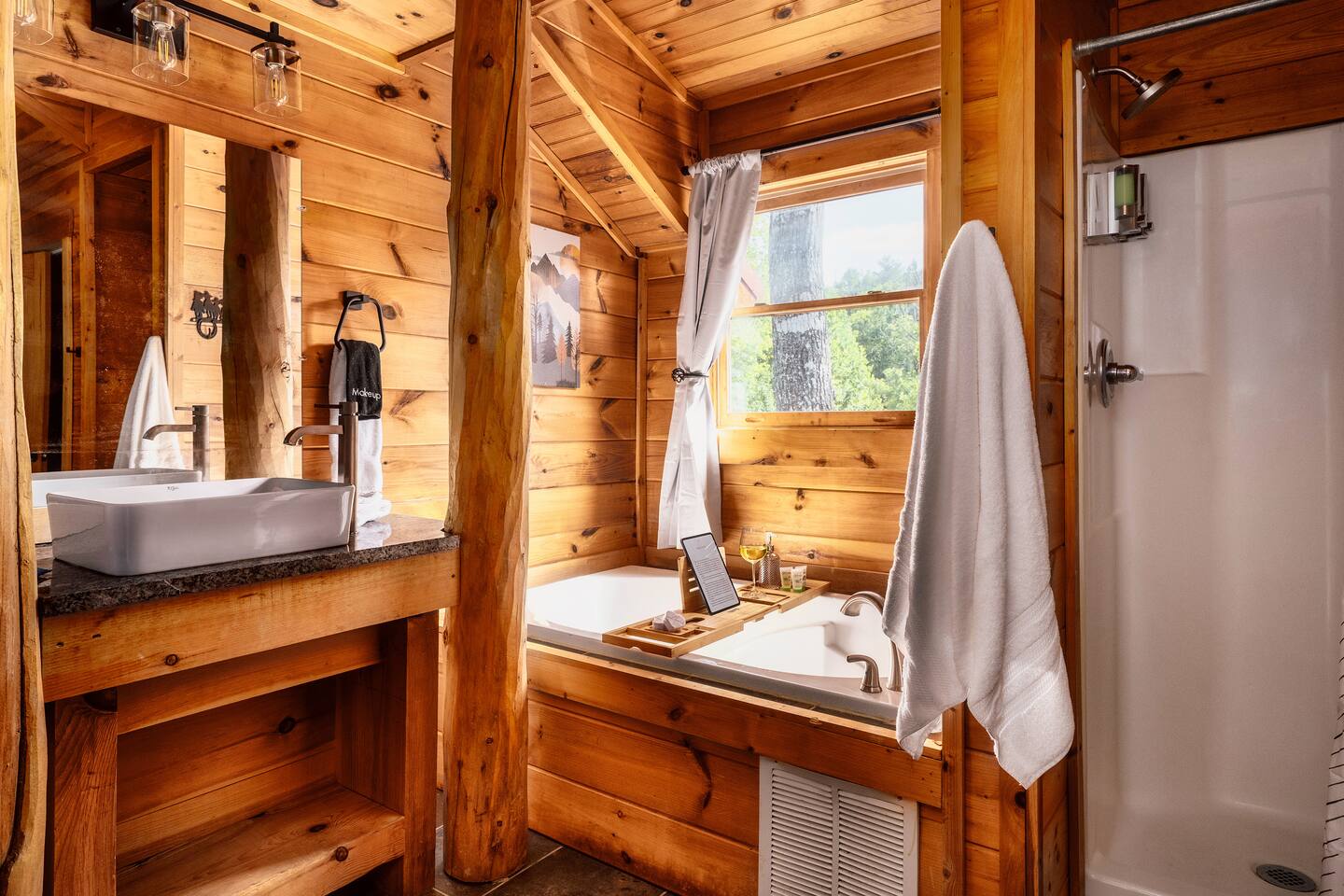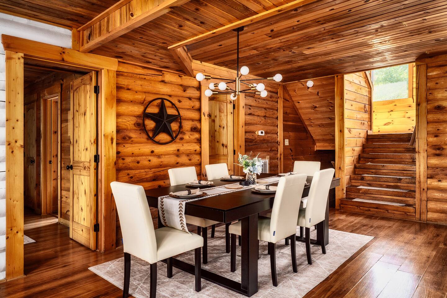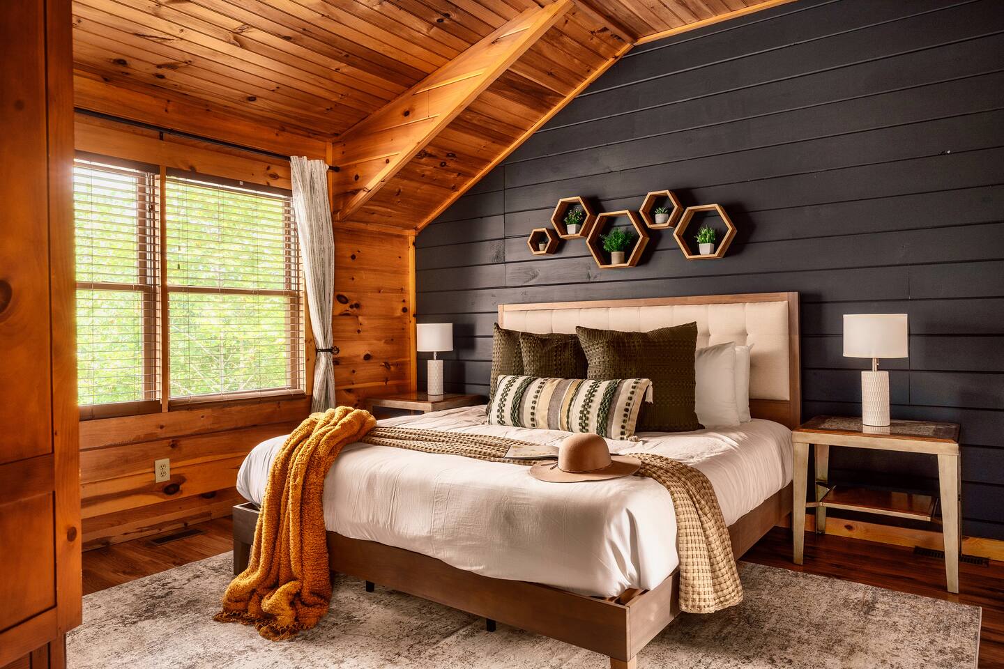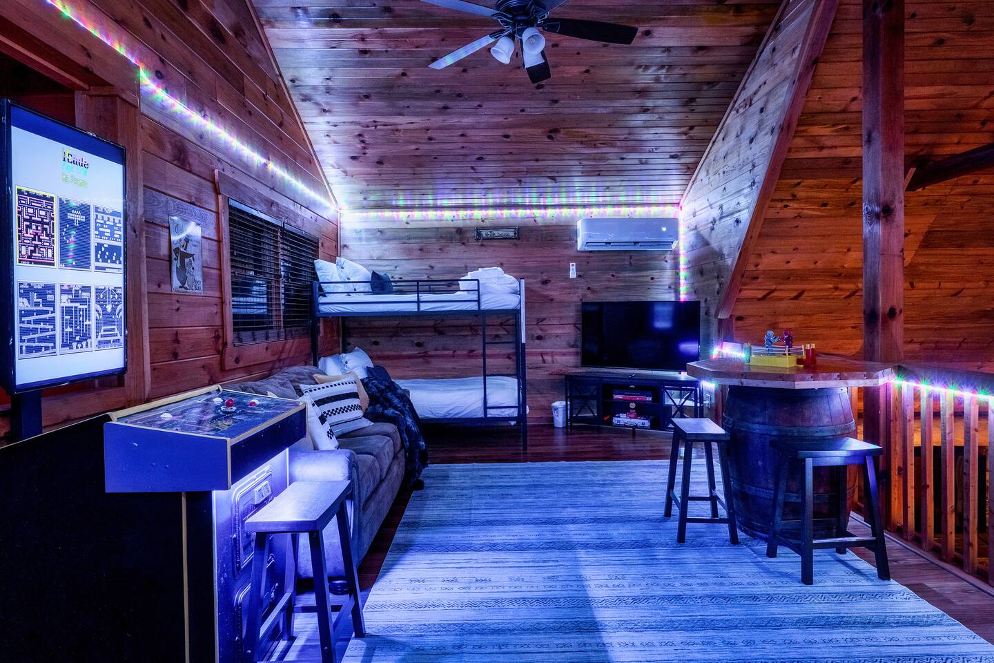Creekside Cubs Lodge has been fully updated to offer a modern and cozy retreat for all to enjoy. This is the perfect cabin for creating unforgettable memories with family and friends. Book your stay today and enjoy a perfect mountain getaway in the Cedar Falls Resort! 🏝️ Private Indoor Saltwater Pool & Hot Tub Splash, swim, shoot some hoops, or just simply relax in the private indoor pool room. Our pool features a flowing stone creek—a truly one-of-a-kind cabin feature! The pool is saltwater and maintained at 83 degrees to keep everyone comfortable, yet still refreshed! Enjoy Adirondack chair seating, a large Roku TV set in Guest Mode, and ambient lighting to make this room a truly standout feature of the cabin. We provide a few inner tubes, pool noodles, and towels. Off of the pool room, you'll have access to our back porch, where you can enjoy the full-size hot tub for a relaxing soak after a long day exploring the Smokies. The indoor pool room is protected with door and splash alarms to help keep your little ones safe during your stay. 🍴 Fully-Stocked Kitchen and Coffee Bar: The kitchen is located on the main floor just as you enter the cabin and features updated cabinets, full-size appliances, cookware, glassware, plates/bowls, utensils, and basic cooking essentials you'll need to make a home-cooked meal for the entire group. Enjoy seating for 6 at our brand new, modern table, with additional seating for 3 at the bar-height counter. We provide a stocked coffee bar to get your day started. Enjoy your morning brew using our Keurig K-Duo drip and K-cup combo maker. We offer a coffee starter-pack, a few K cups to get you going, sugar, powdered-creamer, flavored syrup, and black tea. 🔥 Cozy Living Room: Gather around the unique stone and timber gas fireplace, the main focal point of the room, while streaming your favorite shows on the brand new 65-inch Roku Smart TV, set to Guest Mode, so you can be automatically logged-out of any app you sign into during your stay. The couch doubles as a pullout Queen sleeper sofa, providing an extra sleeping area for your group. 🛏️ Main Level Bedroom Suite: Located just off of the living room, unwind in the main level King suite, fully equipped with fluffy pillows and blankets, dresser, Roku Smart TV, and access to the full-size bathroom. You'll also have your own private access to the large, partially-covered back porch. The full bathroom on the main level features a large soaking tub, shower stall, and vanity. We provide a starter of toilet paper, towels, hand soap, shampoo, body wash, and a hair dryer. 🛏️ Second Level Bedroom Suite + Laundry Closet: Upstairs, you'll find an additional King bedroom suite, also equipped with fluffy pillows and blankets, dresser, Roku Smart TV, and access to another full-size bathroom. The full bathroom on the second level also features a large soaking tub, shower stall, and vanity. We provide additional toilet paper, towels, hand soap, shampoo, body wash, and a hair dryer. You'll also have access to the laundry closet, where you'll find a full-size washer/dryer stack, iron, ironing board, drying rack, and a starter of laundry detergent pods and dryer sheets. ↗️ Loft- Bunk Room, & Game Room: The newly updated loft is a fun-filled space for everyone. The loft features a twin bunk and pullout Queen sleeper sofa. Turn on the perimeter rope lighting to create your very own arcade and game room. The loft features a multi-game arcade console, wall-mounted basketball hoop, board game table, and large Roku Smart TV. Enjoy a variety of board games for the family, poker chips, and playing cards. 🌟 Relaxing Back Porch: The main level porch is partially covered and features outdoor seating under glowing string lights to relax after a long day exploring the Smokies. Enjoy a private, wooded back-drop, with seasonal views of the ridge-line in the winter months. 📶 High-Speed Internet: Stay connected with reliable Xfinity Wi-Fi throughout the cabin. All Roku TVs are set in guest mode, so you will be automatically logged out of any of your streaming services used on the day you checkout. Please note that we do not provide cable. ⛰️ Cedar Falls Resort During your stay you'll have access to amenities provided by Cedar Falls Resort. Enjoy your drive into the resort under the covered bridge, and you'll arrive to our cabin after a short drive. While here, you can enjoy the outdoor community pool (during summer months), playground, basketball court, catch and release fishing pond, and awesome walking trail! For large groups, the pavilion is available for use, unless reserved by a private party. The chapel is available to rent directly through Cedar Falls, which can be reserved and paid for in advance directly through the community website. Please note- we cannot guarantee availability of resort amenities at the time of your stay, as they are operated solely by the resort. ⭐ KEY FEATURES⭐ - 2,889 sq. ft. cabin in the peaceful Cedar Falls Resort - Recently updated interior offering a cozy, modern cabin feel - 2 king bedrooms, sleeping loft + 2 sleeper sofas (sleeps up to 8) - 2 full bathrooms, 1 half bathroom - PRIVATE, indoor saltwater pool (83 deg) with flowing stone creek - Hot tub on porch off of the indoor pool room - Loft game room with arcade, board games, wall-mounted basketball hoop - Multiple Roku Smart TVs set to Guest Mode so you can log-in to your favorite streaming services - Dining table seats 6, bar counter seats 3 - Fully stocked kitchen with cookware, utensils, and basic cooking supplies - Coffee bar stocked with starter coffee pack and starter K-cups, sugar, tea We provide starter kitchen supplies of salt, pepper, various spices, cooking oil, hand soap, dish soap, sponge, dishwasher pods, K-cups, coffee pack, tea, sugar, powdered creamer, and 1 full paper towel roll. Bathrooms are stocked with towels, 2 toilet paper rolls per bathroom, hand soap, shampoo, and body wash. Laundry area inc