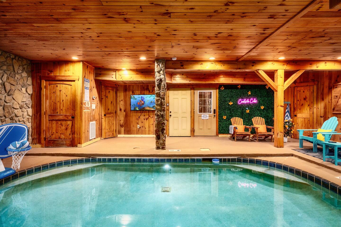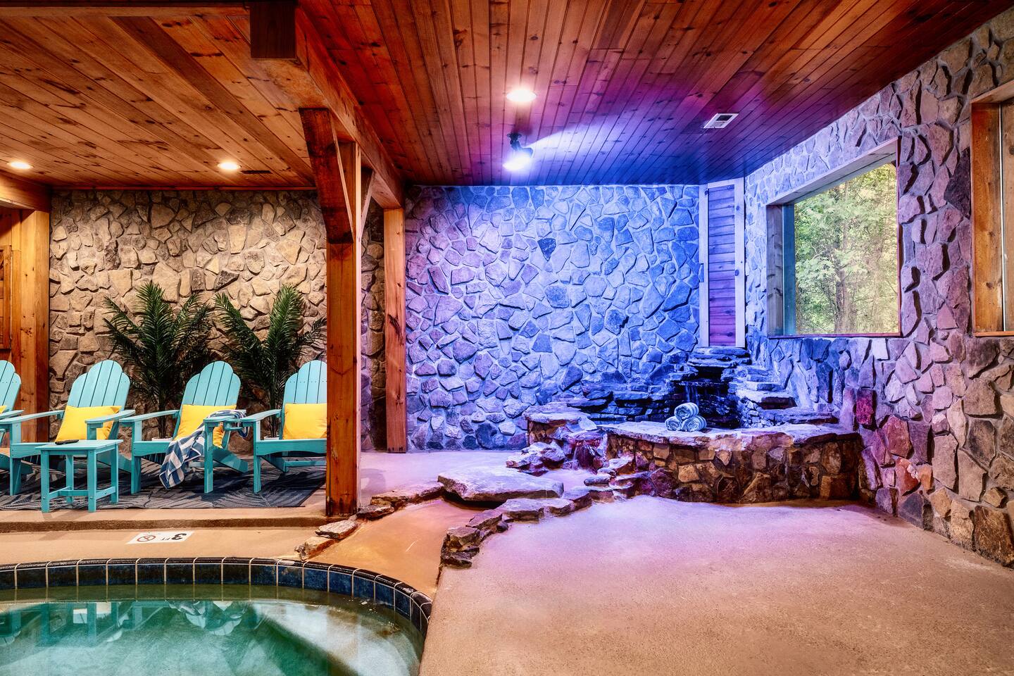 Newly Renovated! Book now for our best rates! ⭐️ Welcome to Creekside Cubs Lodge ⭐️ Step into this family-friendly cabin tucked into the serene Cedar Falls Resort to make lifelong memories with loved ones. This 2-bedroom + loft, 2.5-bath cabin features a private saltwater indoor pool, complete with a flowing creek, basketball hoop, and comfortable seating. 🎟️ 23 min to Dollywood 🌆 33 min to Gatlinburg SkyPark ⛰️ 33 min to the Great Smoky Mountains National Park