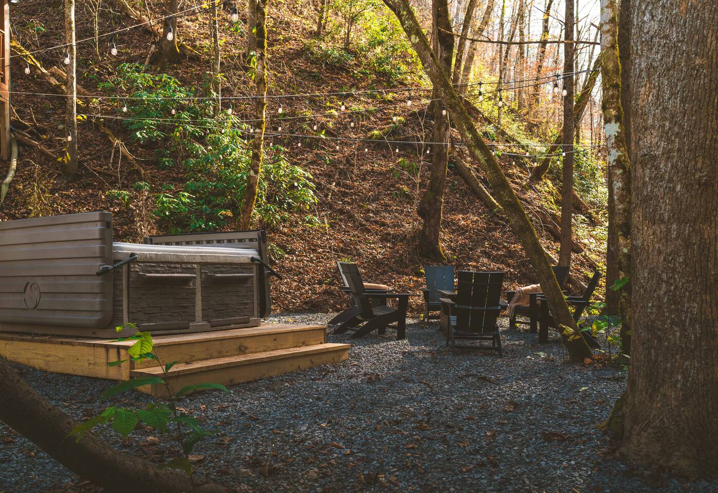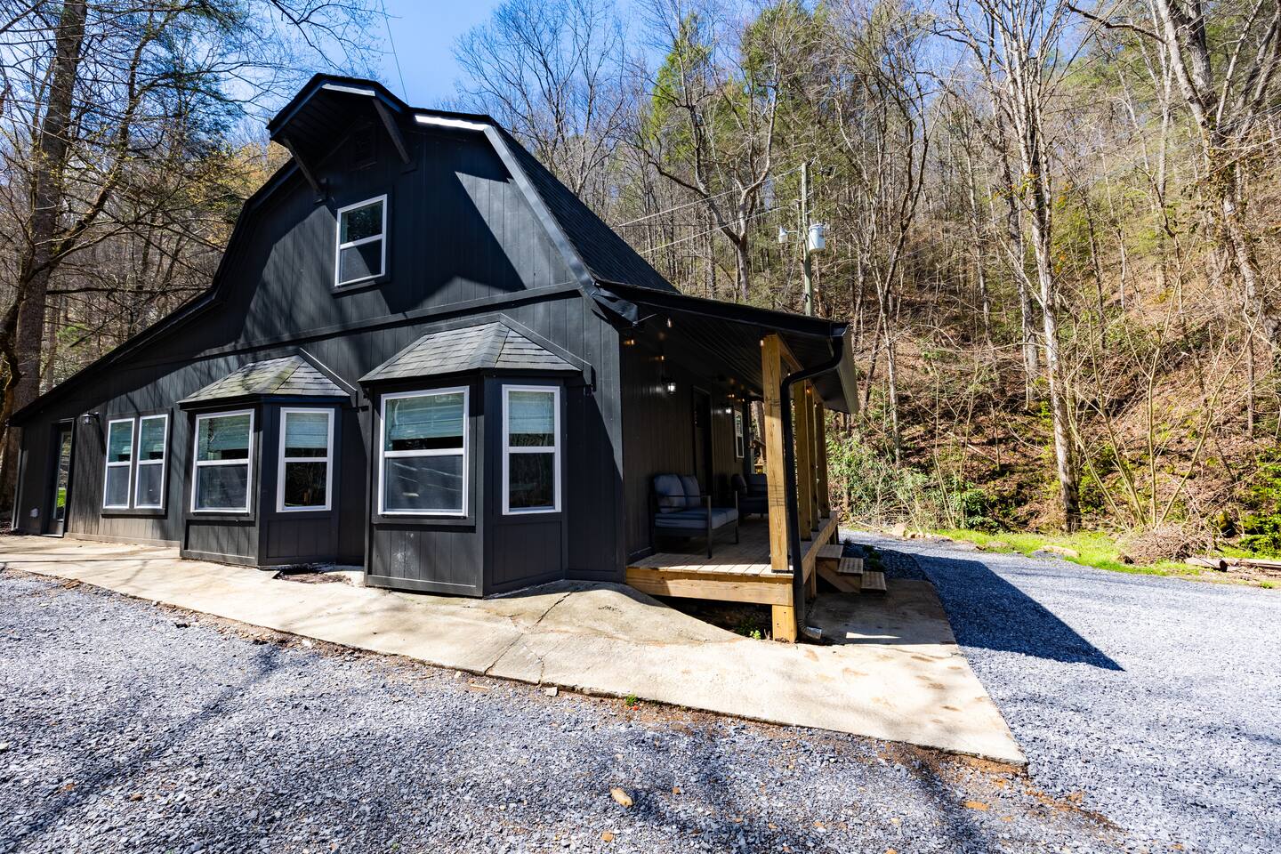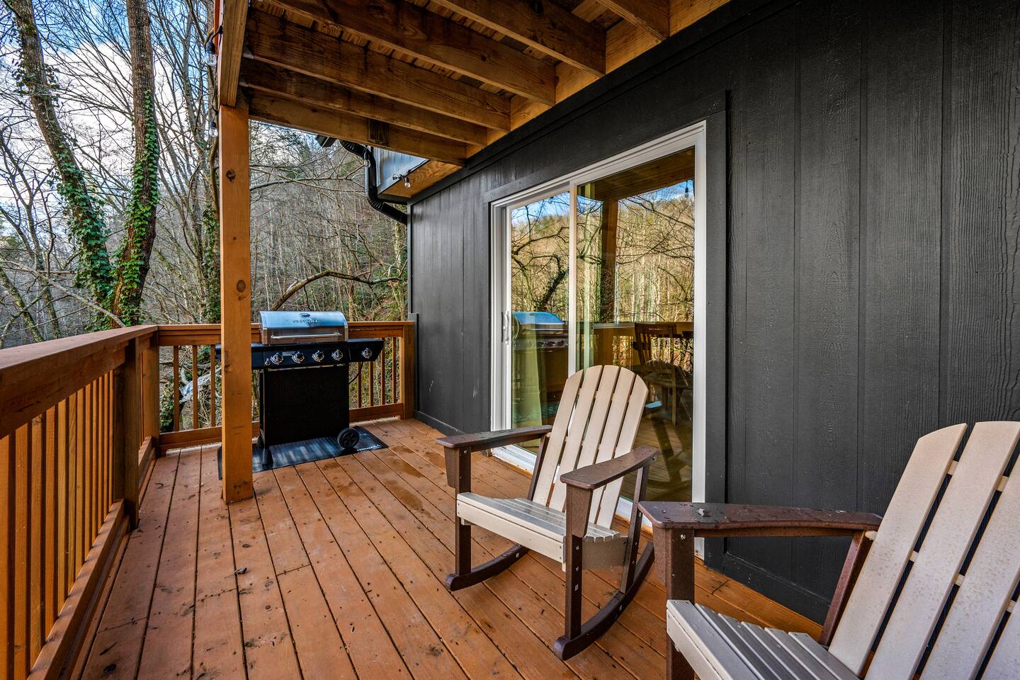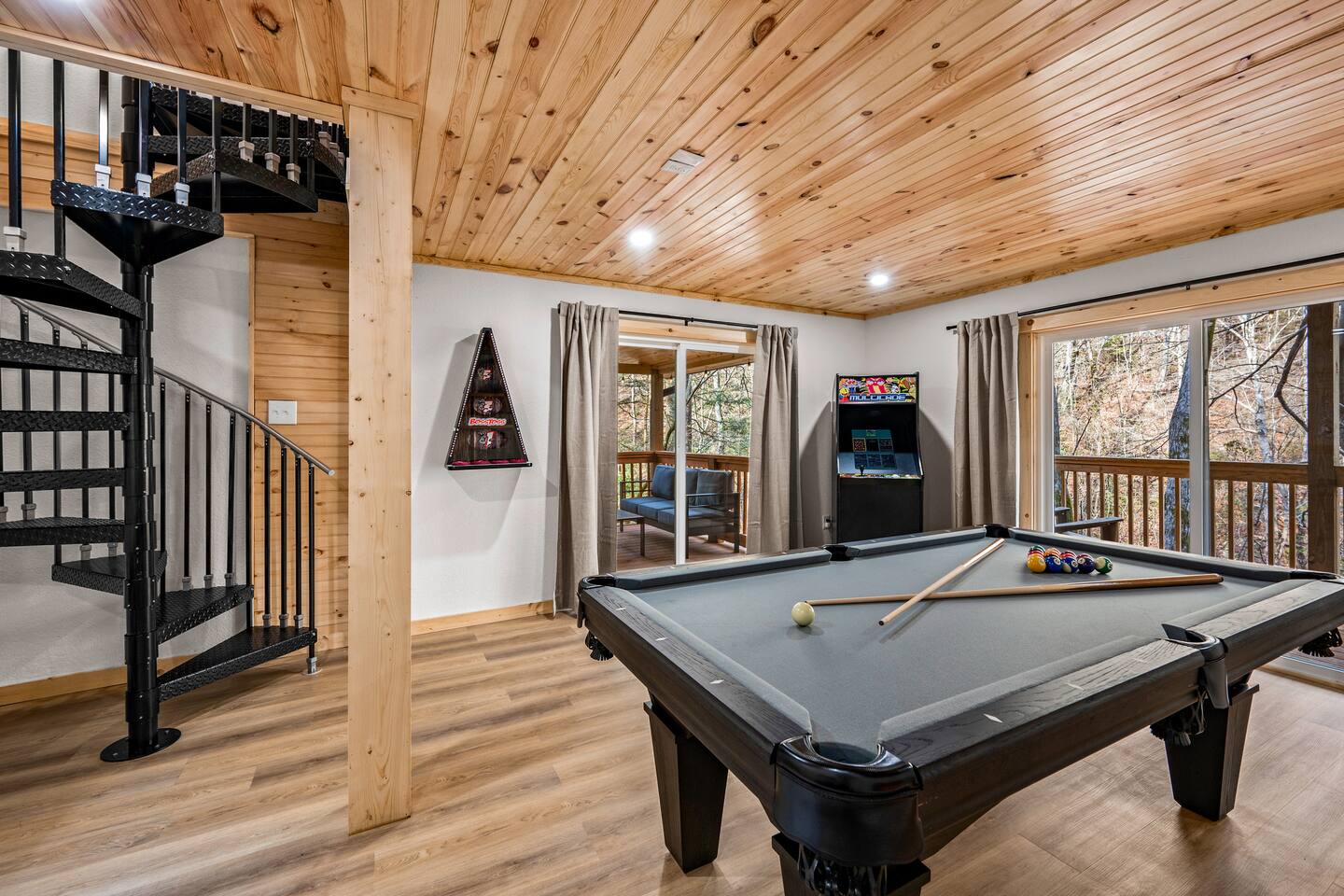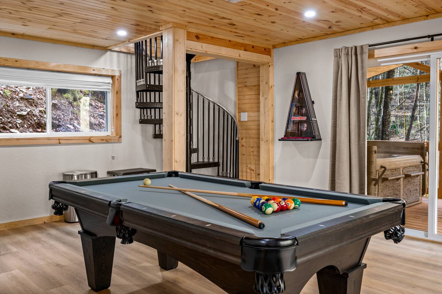 Stony Creek Escape is a stunning 6-acre Estate, featuring 2 properties that can accommodate up to 25 guests, making it ideal for family gatherings, group retreats, weddings, and a luxurious escape to the Great Smoky Mountains! The Estate is located in the tranquil Shagbark Resort and features the 4-bedroom Lodge and the 2-bedroom Bungalow. This thoughtfully designed property offers the perfect blend of premium amenities, comfort, and functionality. Pet friendly for up to 3 pets!! Book your stay today and enjoy a perfect mountain getaway in Shagbark Resort! π΄ Fully-Stocked Kitchen + Dining: The Lodge and Bungalow each feature their own fully stocked kitchen, complete with full-size appliances, cookware, glassware, plates/bowls, utensils, and basic cooking essentials you'll need to make a home-cooked meal for the entire group. Enjoy your morning brew using our Keurig drip and K-cup dual coffee pots. We offer a coffee starter-pack at each property to get you going. Bring extra if you are coffee lovers! In the Lodge, you'll step foot into the large dining area as you first enter the home. Our large, rustic dining table comfortably fits 10, with additional bar-height seating available in the nook and kitchen. Take in the ambiance provided by the electric fireplace mounted to the wall. A large Roku Smart TV means you'll never miss a big play as you cheer on your favorite team or catch up on some shows. The Bungalow is equipped with a cozy dining area, just off of the kitchen, that seats 6 guests. π₯ Cozy Living Rooms: Whether in the Lodge or Bungalow, gather with your loved ones- playing games, or watching your favorite shows in the thoughtfully designed living rooms. Each living room features a large Roku Smart TV, set to Guest Mode, so you can stream on your favorite apps throughout your stay and be automatically logged-out on the day you depart. Both the Lodge and Bungalow feature a sleeper sofa, providing extra sleeping accommodations for your group. ποΈ π§» The Bedrooms + Bathrooms: The Lodge: Up the stairs from the dining area you'll find 2 bedroom suites, both featuring a full-bathroom with walk-in shower. Each bedroom has its own private balcony, so you can enjoy that morning cup of coffee while taking in the fresh air of the Smoky Mountains. - The King suite features high cathedral ceilings and ample space to feel right at home. Enjoy a Roku Smart TV mounted above a sleek, modern electric fireplace to bring cozy mountain vibes right into your bedroom. - Down the hall, you'll find our Bunk suite, equipped with 2 Queen-over-Queen bunkbeds to comfortably sleep an additional 8 guests. This room also features high cathedral ceilings and offers plenty of space so that those sharing the room do not feel over-crowded. The bunk room also features a Roku Smart TV and additional electric fireplace. Taking the spiral staircase down from the living room, you'll find 2 additional bedrooms. - The first floor King Suite offers the same cozy vibes captured on the third floor. Catch up on some shows on the Roku Smart TV, and enjoy the ambiance of another electric fireplace. Enjoy your own private full-bathroom with walk-in shower. There is private access to the lower level deck, which spans the entire length of the bottom floor, connecting to the game room entry. - An additional bunk room is located down the hall from the King suite, and features a Twin-over-Full bunkbed to comfortably sleep 3 additional guests. In this room you'll also find the laundry closet, featuring a full-size washer and dryer, included with your stay. We provide a start of laundry detergent! The Bungalow: - The main floor of the home features our King suite, fully equipped with fluffy pillows and blankets, Smart TV with Roku, and a separate sunroom overlooking a flowing creek that hugs the entire property. This is our favorite room in the property, as it truly captures the mountain vibes our guests are looking for while staying in the Smokies. A large, full bathroom with a walk-in tiled shower and full-size washer and dryer stack is located just off of the first floor living room. - Upstairs, you'll find an additional bedroom suite, equipped with 2 full size beds to sleep an additional 4 guests. Relax with a good book in our swinging chair, or catch up on your favorite shows with an additional Roku Smart TV set in Guest mode. The second floor also features a full bathroom, with a shower-tub combo and vanity. ** Please note- the second floor is only accessible via an exterior staircase off of the front porch of the Bungalow. Access is controlled by a Smart deadbolt for additional safety and security for our guests! π± πΉοΈ Game Room: The game room is the best room in the Lodge and is also located on the first floor. Our game room features a full-size pool table, multi-game Arcade console, Boss Toss, various board games, a large Roku Smart TV, and electric fireplace. This room is guaranteed to keep your group entertained for hours, as there is something for everyone. Enjoy separate access to the front porch, where you'll find life-size Connect 4 and additional outdoor seating. π§ π₯ Outdoor Hot Tubs + Fire Pit: Off of the Lodge game room you'll find the side porch, where you can soak in our first hot tub after a long day exploring the Smokies. There is additional outdoor seating around the hot tub, providing the perfect hangout area for catching up with family and friends. The second hot tub and our gas fire pit are both located just off of the Bungalow sunroom under a glowing canopy of string lights. This area provides the perfect setting for relaxation and unwinding, while enjoying the sounds of the Smokies around you. Take a dip in the hot tub or gather around the gas fire pit at the end of a day exploring the best the Smokies has to offer. π Third Floor Nook and Kid's Hideout In the Lodge, you'll find a peaceful reading nook on the third floor, with comfortable seating to get lost in a good book before 
