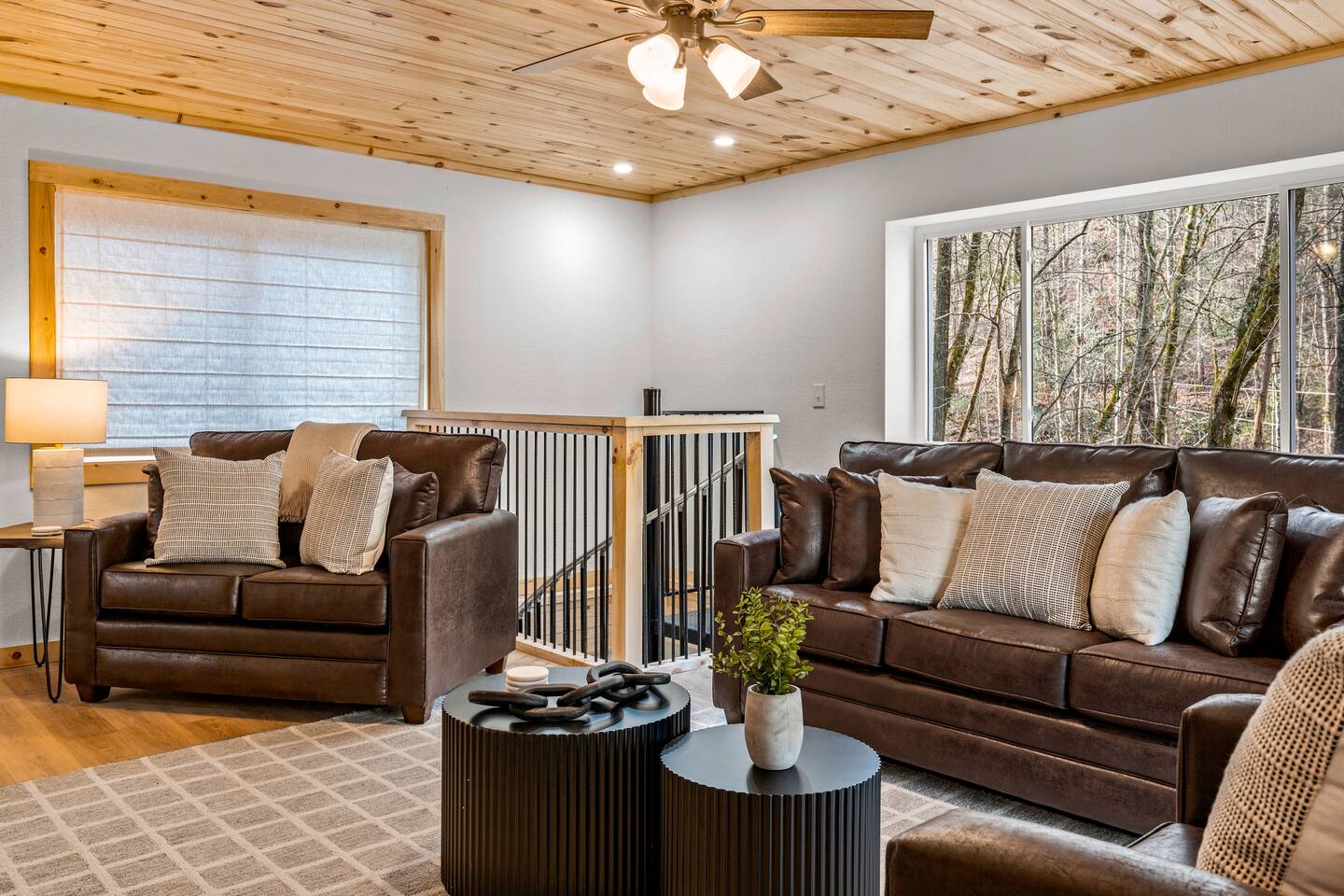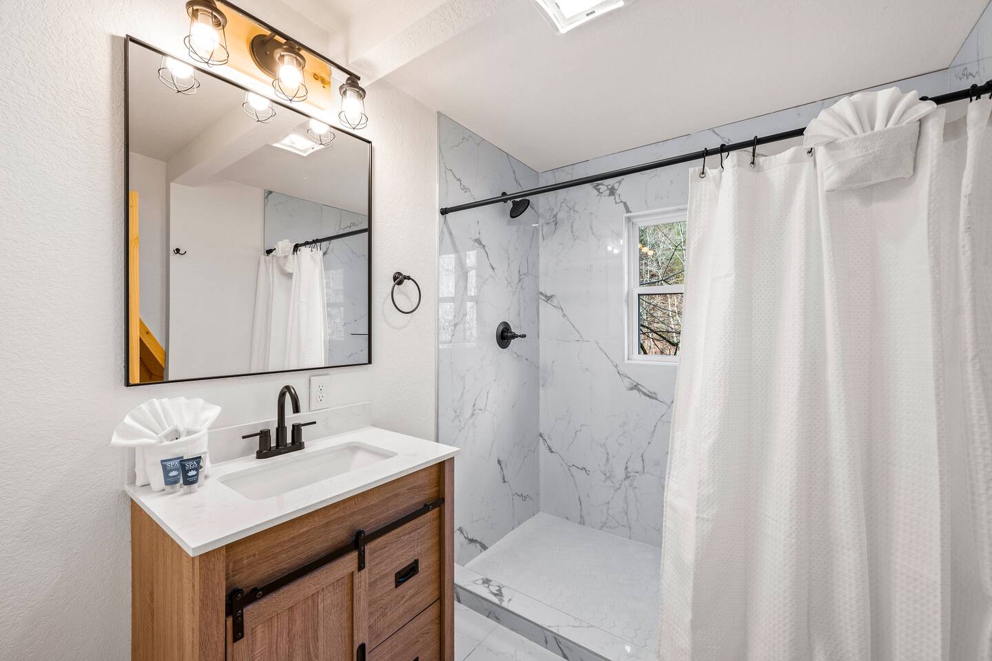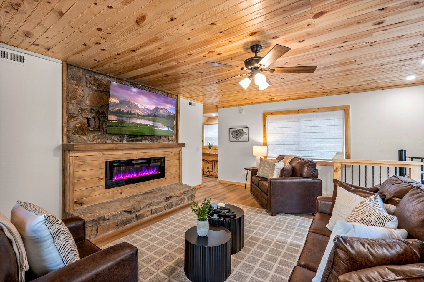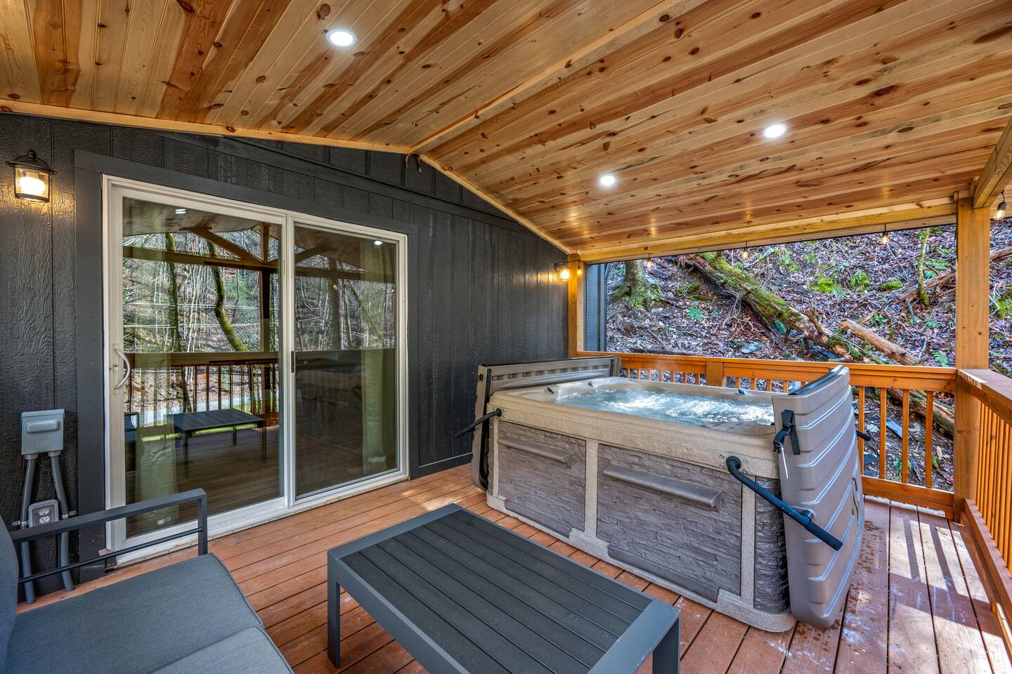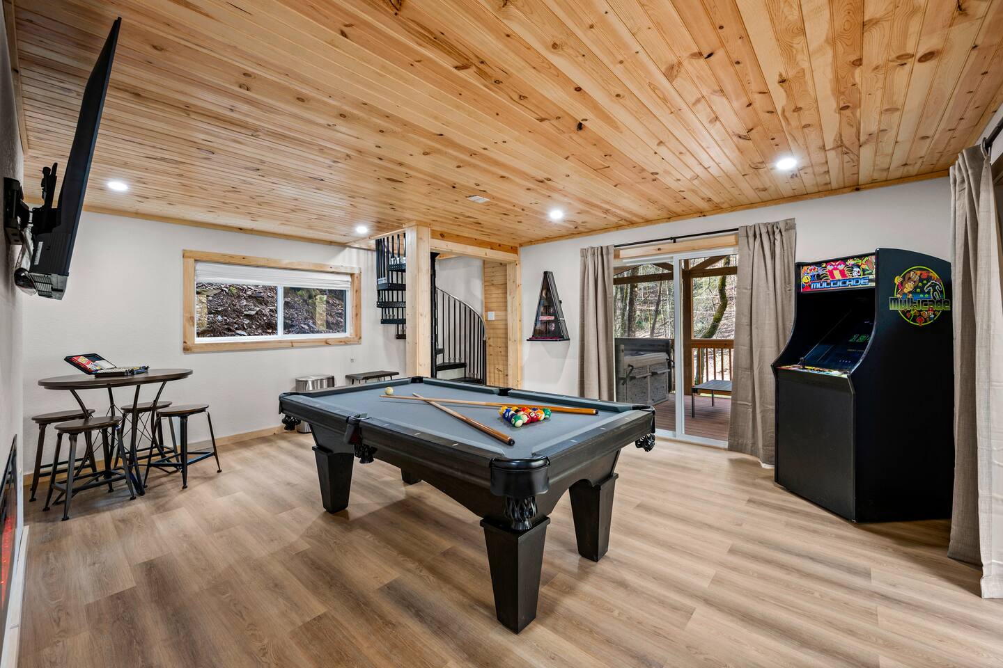 Stony Creek Escape is a stunning 6-acre Estate, featuring 2 properties that can accommodate up to 25 guests, making it ideal for family gatherings, group retreats, weddings, and a luxurious escape to the Great Smoky Mountains! The Estate is located in the tranquil Shagbark Resort and features the 4-bedroom Lodge and the 2-bedroom Bungalow. This thoughtfully designed property offers the perfect blend of premium amenities, comfort, and functionality. Pet friendly for up to 3 pets!! Book your stay today and enjoy a perfect mountain getaway in Shagbark Resort! π΄ Fully-Stocked Kitchen + Dining: The Lodge and Bungalow each feature their own fully stocked kitchen, complete with full-size appliances, cookware, glassware, plates/bowls, utensils, and basic cooking essentials you'll need to make a home-cooked meal for the entire group. Enjoy your morning brew using our Keurig drip and K-cup dual coffee pots. We offer a coffee starter-pack at each property to get you going. Bring extra if you are coffee lovers! In the Lodge, you'll step foot into the large dining area as you first enter the home. Our large, rustic dining table comfortably fits 10, with additional bar-height seating available in the nook and kitchen. Take in the ambiance provided by the electric fireplace mounted to the wall. A large Roku Smart TV means you'll never miss a big play as you cheer on your favorite team or catch up on some shows. The Bungalow is equipped with a cozy dining area, just off of the kitchen, that seats 6 guests. π₯ Cozy Living Rooms: Whether in the Lodge or Bungalow, gather with your loved ones- playing games, or watching your favorite shows in the thoughtfully designed living rooms. Each living room features a large Roku Smart TV, set to Guest Mode, so you can stream on your favorite apps throughout your stay and be automatically logged-out on the day you depart. Both the Lodge and Bungalow feature a sleeper sofa, providing extra sleeping accommodations for your group. ποΈ π§» The Bedrooms + Bathrooms: The Lodge: Up the stairs from the dining area you'll find 2 bedroom suites, both featuring a full-bathroom with walk-in shower. Each bedroom has its own private balcony, so you can enjoy that morning cup of coffee while taking in the fresh air of the Smoky Mountains. - The King suite features high cathedral ceilings and ample space to feel right at home. Enjoy a Roku Smart TV mounted above a sleek, modern electric fireplace to bring cozy mountain vibes right into your bedroom. - Down the hall, you'll find our Bunk suite, equipped with 2 Queen-over-Queen bunkbeds to comfortably sleep an additional 8 guests. This room also features high cathedral ceilings and offers plenty of space so that those sharing the room do not feel over-crowded. The bunk room also features a Roku Smart TV and additional electric fireplace. Taking the spiral staircase down from the living room, you'll find 2 additional bedrooms. - The first floor King Suite offers the same cozy vibes captured on the third floor. Catch up on some shows on the Roku Smart TV, and enjoy the ambiance of another electric fireplace. Enjoy your own private full-bathroom with walk-in shower. There is private access to the lower level deck, which spans the entire length of the bottom floor, connecting to the game room entry. - An additional bunk room is located down the hall from the King suite, and features a Twin-over-Full bunkbed to comfortably sleep 3 additional guests. In this room you'll also find the laundry closet, featuring a full-size washer and dryer, included with your stay. We provide a start of laundry detergent! The Bungalow: - The main floor of the home features our King suite, fully equipped with fluffy pillows and blankets, Smart TV with Roku, and a separate sunroom overlooking a flowing creek that hugs the entire property. This is our favorite room in the property, as it truly captures the mountain vibes our guests are looking for while staying in the Smokies. A large, full bathroom with a walk-in tiled shower and full-size washer and dryer stack is located just off of the first floor living room. - Upstairs, you'll find an additional bedroom suite, equipped with 2 full size beds to sleep an additional 4 guests. Relax with a good book in our swinging chair, or catch up on your favorite shows with an additional Roku Smart TV set in Guest mode. The second floor also features a full bathroom, with a shower-tub combo and vanity. ** Please note- the second floor is only accessible via an exterior staircase off of the front porch of the Bungalow. Access is controlled by a Smart deadbolt for additional safety and security for our guests! π± πΉοΈ Game Room: The game room is the best room in the Lodge and is also located on the first floor. Our game room features a full-size pool table, multi-game Arcade console, Boss Toss, various board games, a large Roku Smart TV, and electric fireplace. This room is guaranteed to keep your group entertained for hours, as there is something for everyone. Enjoy separate access to the front porch, where you'll find life-size Connect 4 and additional outdoor seating. π§ π₯ Outdoor Hot Tubs + Fire Pit: Off of the Lodge game room you'll find the side porch, where you can soak in our first hot tub after a long day exploring the Smokies. There is additional outdoor seating around the hot tub, providing the perfect hangout area for catching up with family and friends. The second hot tub and our gas fire pit are both located just off of the Bungalow sunroom under a glowing canopy of string lights. This area provides the perfect setting for relaxation and unwinding, while enjoying the sounds of the Smokies around you. Take a dip in the hot tub or gather around the gas fire pit at the end of a day exploring the best the Smokies has to offer. π Third Floor Nook and Kid's Hideout In the Lodge, you'll find a peaceful reading nook on the third floor, with comfortable seating to get lost in a good book before 