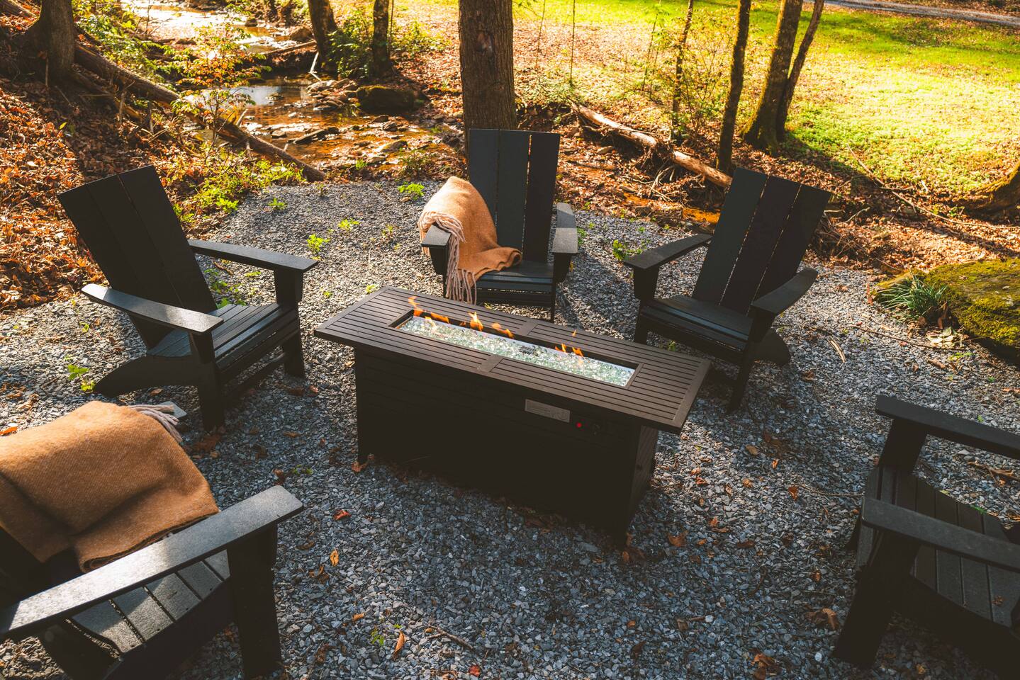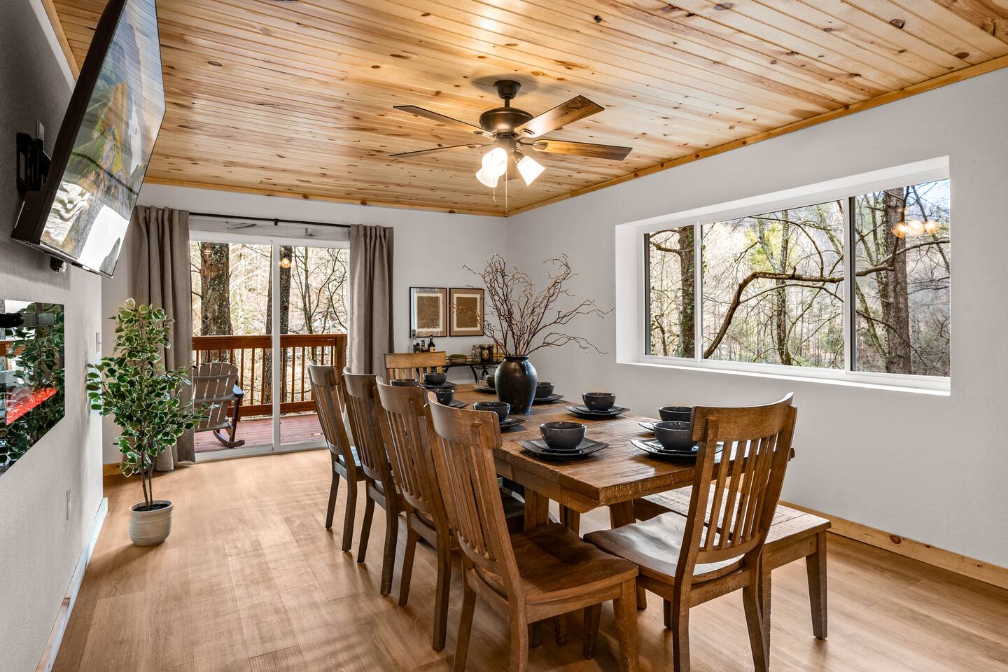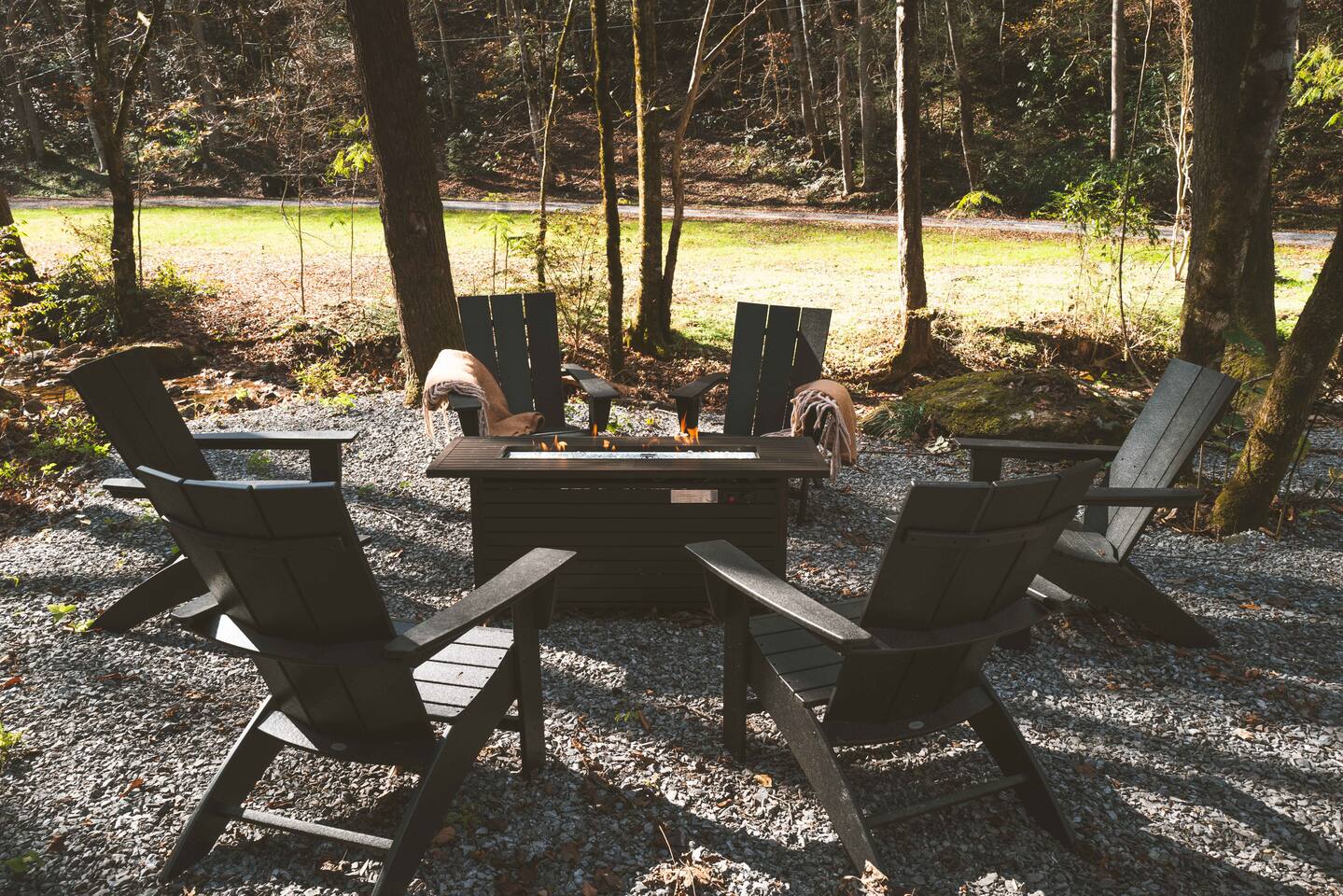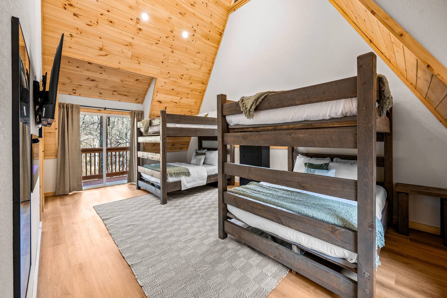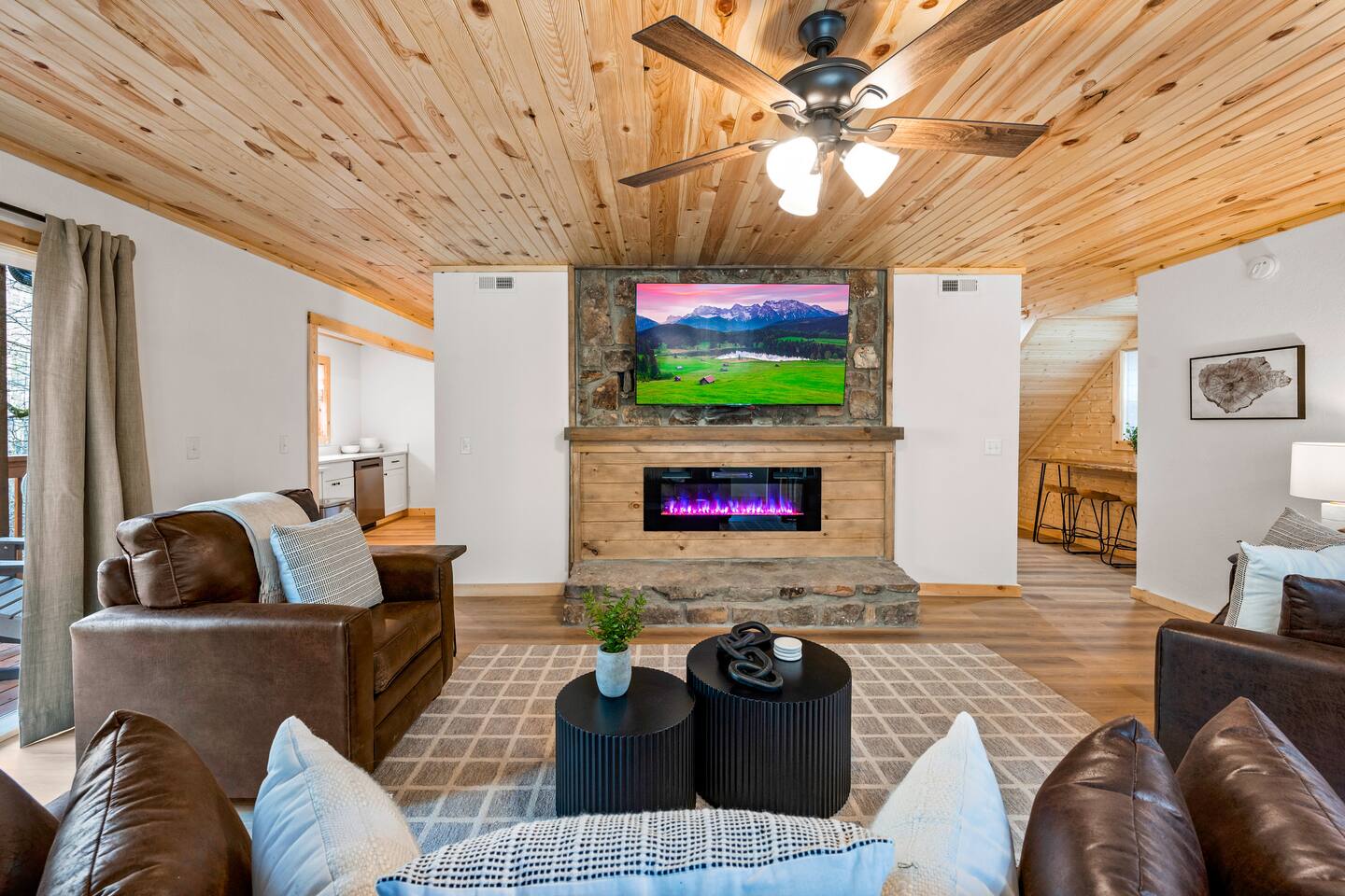 Stony Creek Escape is a stunning 6-acre Estate, featuring 2 properties that can accommodate up to 25 guests, making it ideal for family gatherings, group retreats, weddings, and a luxurious escape to the Great Smoky Mountains! The Estate is located in the tranquil Shagbark Resort and features the 4-bedroom Lodge and the 2-bedroom Bungalow. This thoughtfully designed property offers the perfect blend of premium amenities, comfort, and functionality. Pet friendly for up to 3 pets!! Book your stay today and enjoy a perfect mountain getaway in Shagbark Resort! π΄ Fully-Stocked Kitchen + Dining: The Lodge and Bungalow each feature their own fully stocked kitchen, complete with full-size appliances, cookware, glassware, plates/bowls, utensils, and basic cooking essentials you'll need to make a home-cooked meal for the entire group. Enjoy your morning brew using our Keurig drip and K-cup dual coffee pots. We offer a coffee starter-pack at each property to get you going. Bring extra if you are coffee lovers! In the Lodge, you'll step foot into the large dining area as you first enter the home. Our large, rustic dining table comfortably fits 10, with additional bar-height seating available in the nook and kitchen. Take in the ambiance provided by the electric fireplace mounted to the wall. A large Roku Smart TV means you'll never miss a big play as you cheer on your favorite team or catch up on some shows. The Bungalow is equipped with a cozy dining area, just off of the kitchen, that seats 6 guests. π₯ Cozy Living Rooms: Whether in the Lodge or Bungalow, gather with your loved ones- playing games, or watching your favorite shows in the thoughtfully designed living rooms. Each living room features a large Roku Smart TV, set to Guest Mode, so you can stream on your favorite apps throughout your stay and be automatically logged-out on the day you depart. Both the Lodge and Bungalow feature a sleeper sofa, providing extra sleeping accommodations for your group. ποΈ π§» The Bedrooms + Bathrooms: The Lodge: Up the stairs from the dining area you'll find 2 bedroom suites, both featuring a full-bathroom with walk-in shower. Each bedroom has its own private balcony, so you can enjoy that morning cup of coffee while taking in the fresh air of the Smoky Mountains. - The King suite features high cathedral ceilings and ample space to feel right at home. Enjoy a Roku Smart TV mounted above a sleek, modern electric fireplace to bring cozy mountain vibes right into your bedroom. - Down the hall, you'll find our Bunk suite, equipped with 2 Queen-over-Queen bunkbeds to comfortably sleep an additional 8 guests. This room also features high cathedral ceilings and offers plenty of space so that those sharing the room do not feel over-crowded. The bunk room also features a Roku Smart TV and additional electric fireplace. Taking the spiral staircase down from the living room, you'll find 2 additional bedrooms. - The first floor King Suite offers the same cozy vibes captured on the third floor. Catch up on some shows on the Roku Smart TV, and enjoy the ambiance of another electric fireplace. Enjoy your own private full-bathroom with walk-in shower. There is private access to the lower level deck, which spans the entire length of the bottom floor, connecting to the game room entry. - An additional bunk room is located down the hall from the King suite, and features a Twin-over-Full bunkbed to comfortably sleep 3 additional guests. In this room you'll also find the laundry closet, featuring a full-size washer and dryer, included with your stay. We provide a start of laundry detergent! The Bungalow: - The main floor of the home features our King suite, fully equipped with fluffy pillows and blankets, Smart TV with Roku, and a separate sunroom overlooking a flowing creek that hugs the entire property. This is our favorite room in the property, as it truly captures the mountain vibes our guests are looking for while staying in the Smokies. A large, full bathroom with a walk-in tiled shower and full-size washer and dryer stack is located just off of the first floor living room. - Upstairs, you'll find an additional bedroom suite, equipped with 2 full size beds to sleep an additional 4 guests. Relax with a good book in our swinging chair, or catch up on your favorite shows with an additional Roku Smart TV set in Guest mode. The second floor also features a full bathroom, with a shower-tub combo and vanity. ** Please note- the second floor is only accessible via an exterior staircase off of the front porch of the Bungalow. Access is controlled by a Smart deadbolt for additional safety and security for our guests! π± πΉοΈ Game Room: The game room is the best room in the Lodge and is also located on the first floor. Our game room features a full-size pool table, multi-game Arcade console, Boss Toss, various board games, a large Roku Smart TV, and electric fireplace. This room is guaranteed to keep your group entertained for hours, as there is something for everyone. Enjoy separate access to the front porch, where you'll find life-size Connect 4 and additional outdoor seating. π§ π₯ Outdoor Hot Tubs + Fire Pit: Off of the Lodge game room you'll find the side porch, where you can soak in our first hot tub after a long day exploring the Smokies. There is additional outdoor seating around the hot tub, providing the perfect hangout area for catching up with family and friends. The second hot tub and our gas fire pit are both located just off of the Bungalow sunroom under a glowing canopy of string lights. This area provides the perfect setting for relaxation and unwinding, while enjoying the sounds of the Smokies around you. Take a dip in the hot tub or gather around the gas fire pit at the end of a day exploring the best the Smokies has to offer. π Third Floor Nook and Kid's Hideout In the Lodge, you'll find a peaceful reading nook on the third floor, with comfortable seating to get lost in a good book before 