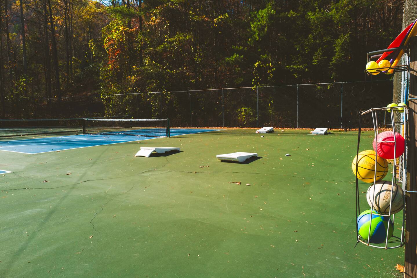 Shagbark Resort is a private, gated community featuring tons of amenities our guests will have access to during their stay. Amenities include an outdoor swimming pool (seasonal May-Sept), tennis courts, pickleball courts, frisbee golf, dog park, playground, and more!