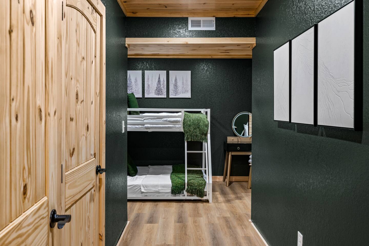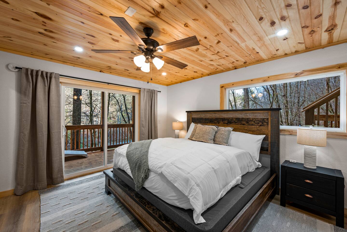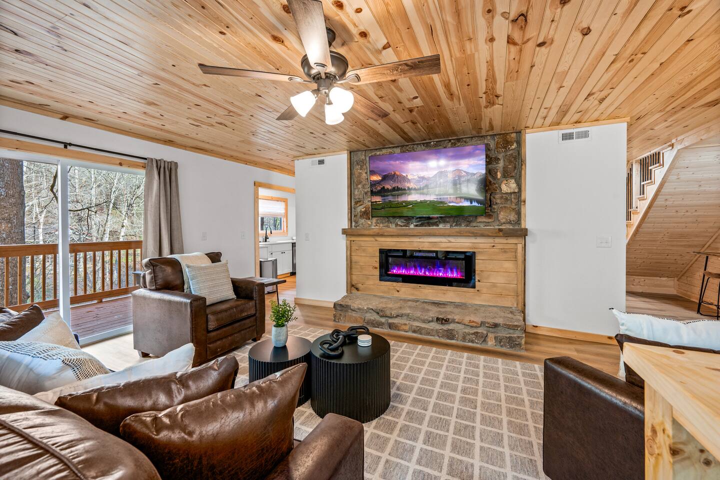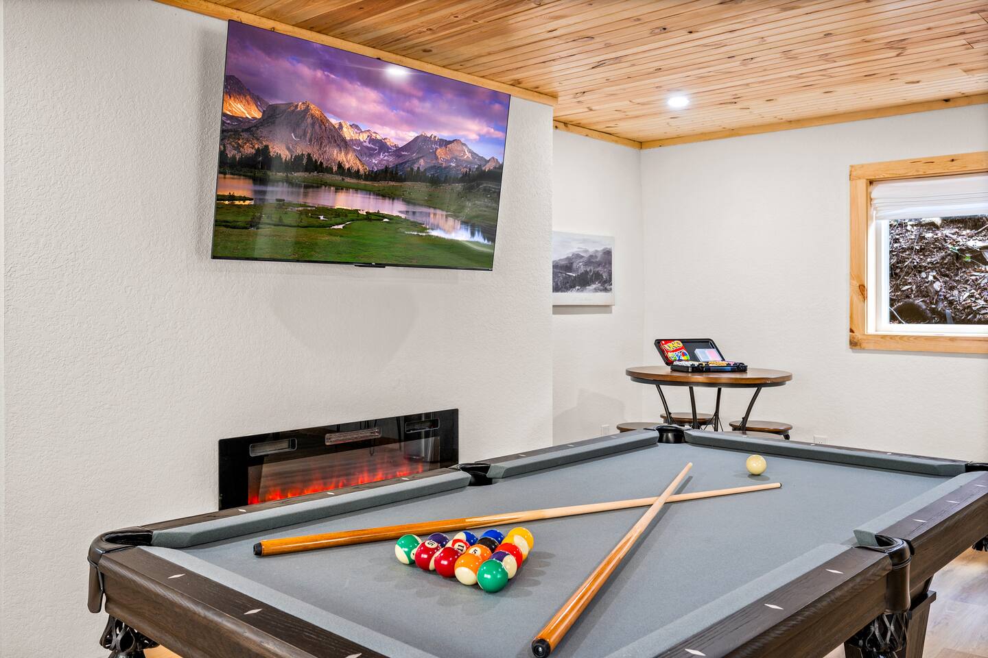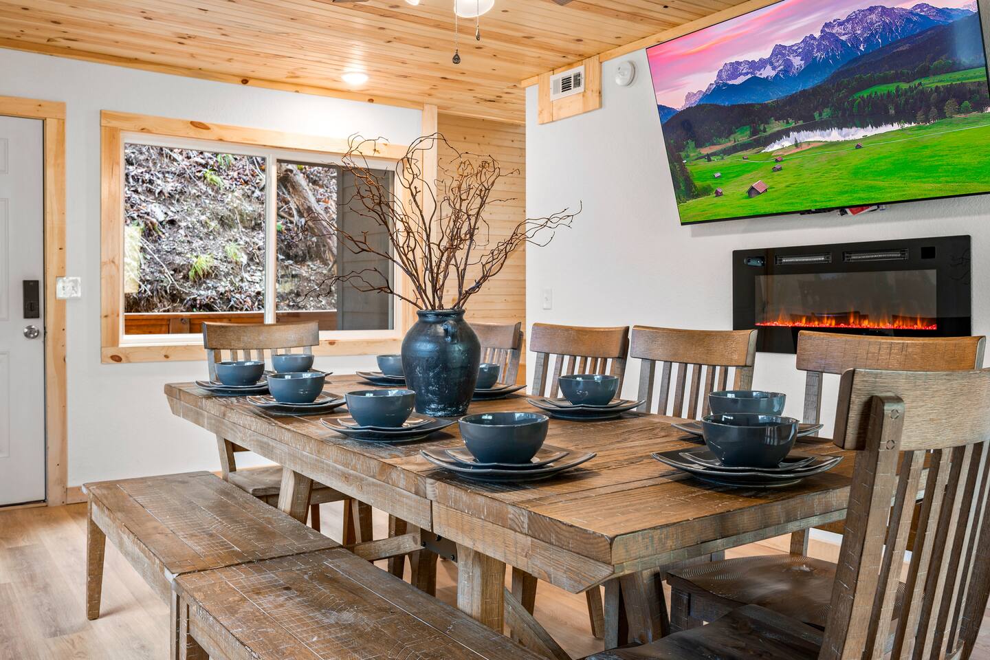 Stony Creek Lodge is a stunning 4-bedroom, 3.5-bathroom home nestled on a picturesque 6-acre estate in the tranquil Shagbark Resort private community. This thoughtfully designed home accommodates up to 17 guests and offers the perfect blend of premium amenities, comfort, and functionality. Pet friendly for up to 2 pets! Book your stay today and enjoy a perfect mountain getaway in Shagbark Resort! π΄ Dining Area & Fully-Stocked Kitchen: Step foot into the large dining area as you first enter the home. Our large, rustic dining table comfortably fits 10, with additional bar-height seating available in the nook and kitchen. Enjoy a home-cooked meal with the entire group, taking in the ambiance provided by the electric fireplace mounted to the wall. A large Roku Smart TV means you'll never miss a big play as you cheer on your favorite team or catch up on some shows. Just beyond the dining area you'll find the fully-stocked kitchen, featuring full-size appliances, cookware, glassware, plates/bowls, utensils, and basic cooking essentials you'll need to cook for the entire group. Enjoy your morning brew using our Keurig drip and K-cup dual coffee pot. We offer a coffee starter-pack to get you going. Bring extra if you are coffee lovers! π₯ Cozy Living Room: Gather around the fireplace in the with your loved ones- playing games, or watching your favorite shows. The Roku Smart TV is set to Guest Mode, so you can stream on your favorite apps throughout your stay and be automatically logged-out on the day you depart. The couch doubles as a pullout sleeper sofa, providing an extra sleeping area for your group. ποΈ Third Floor Bedrooms: Up the stairs from the dining area you'll find 2 bedroom suites, both featuring a full-bathroom with walk-in shower. Each bedroom has its own private balcony, so you can enjoy that morning cup of coffee while taking in the fresh air of the Smoky Mountains. The King suite features high cathedral ceilings and ample space to feel right at home. Enjoy a Roku Smart TV mounted above a sleek, modern electric fireplace to bring cozy mountain vibes right into your bedroom. Down the hall, you'll find our Bunk suite, equipped with 2 Queen-over-Queen bunkbeds to comfortably sleep an additional 8 guests. This room also features high cathedral ceilings and offers plenty of space so that those sharing the room do not feel over-crowded. The bunk room also features a Roku Smart TV and additional electric fireplace. π Third Floor Nook and Kid's Hideout Between the King and Bunk rooms is a peaceful reading nook, with comfortable seating to get lost in a good book before bed. There is also a dedicated work-space in case you need to catch up on work during your stay. Take the ladder up to our "Kid's Hideout", where your little ones can get lost in board games, shoot some hoops, or simply escape for some peace and quiet (may better serve as a "Parent's Hideout" π) ποΈ First Floor Bedrooms: Taking the spiral staircase down from the living room, you'll find 2 additional bedrooms. The first floor King Suite offers the same cozy vibes captured on the third floor. Catch up on some shows on the Roku Smart TV, and enjoy the ambiance of another electric fireplace. Enjoy your own private full-bathroom with walk-in shower. There is private access to the lower level deck, which spans the entire length of the bottom floor, connecting to the game room entry. An additional bunk room is located down the hall from the King suite, and features a Twin-over-Full bunkbed to comfortably sleep 3 additional guests. In this room you'll also find the laundry closet, featuring a full-size washer and dryer, included with your stay. We provide a start of laundry detergent! π± πΉοΈ Game Room + Hot Tub: The game room is the best room in the house and is also located on the first floor. Our game room features a full-size pool table, multi-game Arcade console, Boss Toss, various board games, a large Roku Smart TV, and electric fireplace. This room is guaranteed to keep your group entertained for hours, as there is something for everyone. Enjoy separate access to the front porch, where you'll find life-size Connect 4 and additional outdoor seating. Off of the game room you'll find the side porch, where you can soak in the hot tub under glowing string lights after a long day exploring the Smokies. There is additional outdoor seating, providing the perfect hangout area for catching up with family and friends. πΆ High-Speed Internet + Smart TVs: Stay connected with reliable, high-speed Wi-Fi throughout the home. All 6 Smart TVs are equipped with Roku set in Guest Mode, so you will be automatically logged out of any of your streaming services used on the day you checkout! π² π Outdoor Space: Enjoy a large, flat grassy area at the front of the Lodge, providing the perfect area to play a game of football with the family, or simply allow the kids and dogs to run around and tire themselves out. The Lodge features 2 large decks, spanning the entire length of the home, featuring life-size Connect-4, a propane grill, and ample outdoor seating for ultimate relaxation. There are 2 smaller, private balconies attached to each bedroom on the third floor. β°οΈ Shagbark Resort: During your stay you'll have access to amenities provided by Shagbark Resort. While here, you can enjoy the outdoor community pool (during summer months), tennis courts, pickleball courts, basketball court, dog park, and more!! For large groups, there is a community center available for rent directly through the HOA! ** Please note- we cannot guarantee availability of resort amenities at the time of your stay, as they are operated solely by the resort. Availability is subject to change. β KEY FEATURES β β’ Located in Shagbark Resort, a gated community β’ Pet Friendly!! Up to 2 pets allowed with non-refundable deposit β’ Tastefully designed interior offering a cozy, modern cabin feel β’ 4 bedrooms: 2 King beds, 2 Queen-over-Qu