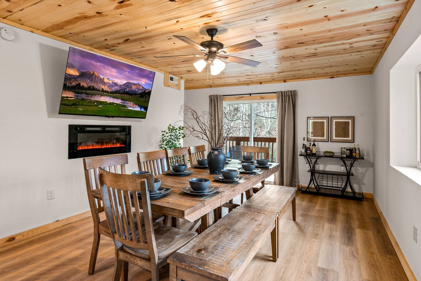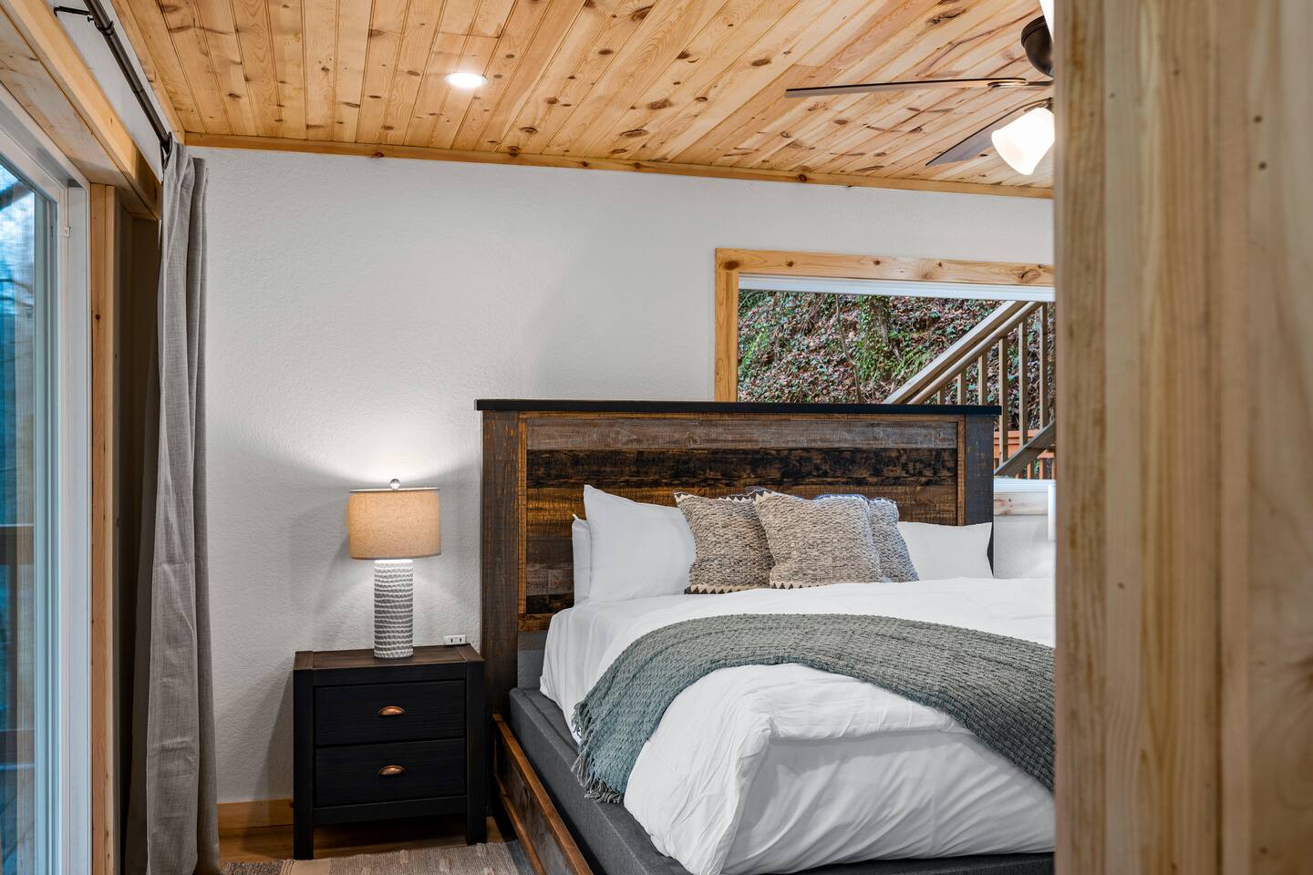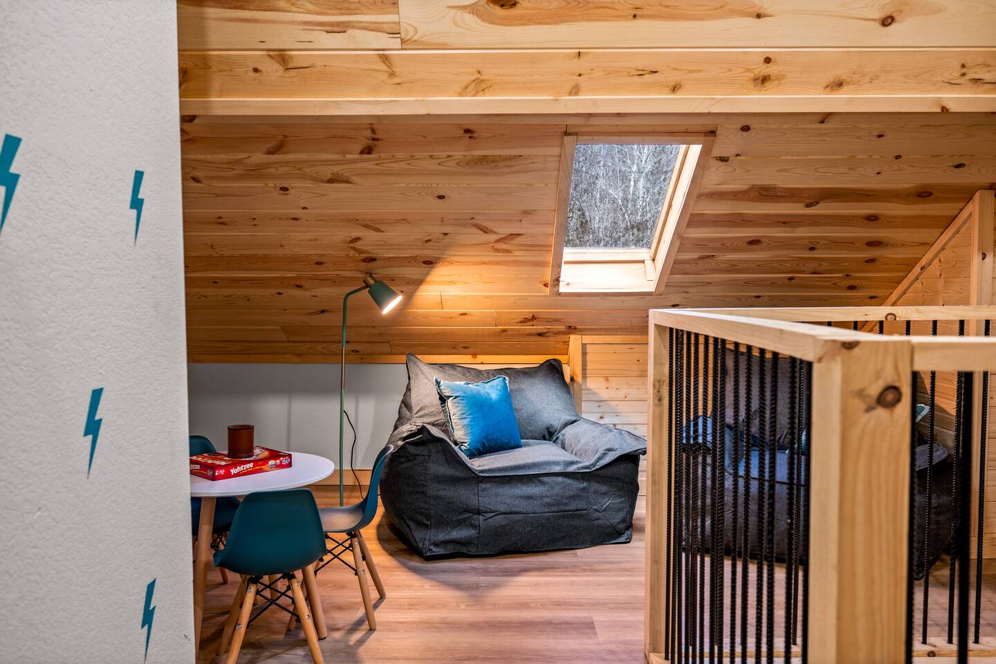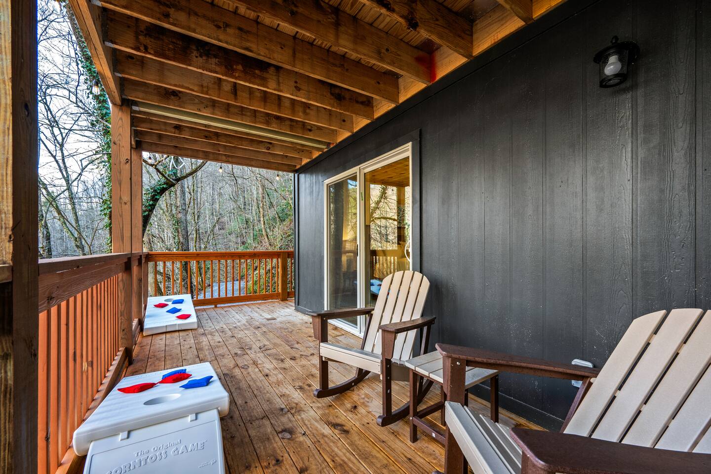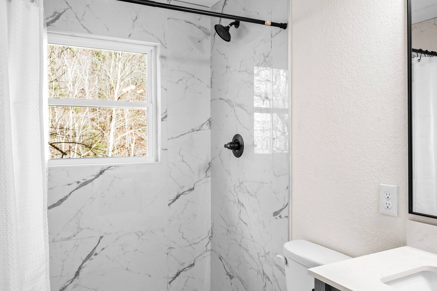 Stony Creek Lodge is a stunning 4-bedroom, 3.5-bathroom home nestled on a picturesque 6-acre estate in the tranquil Shagbark Resort private community. This thoughtfully designed home accommodates up to 17 guests and offers the perfect blend of premium amenities, comfort, and functionality. Pet friendly for up to 2 pets! Book your stay today and enjoy a perfect mountain getaway in Shagbark Resort! π΄ Dining Area & Fully-Stocked Kitchen: Step foot into the large dining area as you first enter the home. Our large, rustic dining table comfortably fits 10, with additional bar-height seating available in the nook and kitchen. Enjoy a home-cooked meal with the entire group, taking in the ambiance provided by the electric fireplace mounted to the wall. A large Roku Smart TV means you'll never miss a big play as you cheer on your favorite team or catch up on some shows. Just beyond the dining area you'll find the fully-stocked kitchen, featuring full-size appliances, cookware, glassware, plates/bowls, utensils, and basic cooking essentials you'll need to cook for the entire group. Enjoy your morning brew using our Keurig drip and K-cup dual coffee pot. We offer a coffee starter-pack to get you going. Bring extra if you are coffee lovers! π₯ Cozy Living Room: Gather around the fireplace in the with your loved ones- playing games, or watching your favorite shows. The Roku Smart TV is set to Guest Mode, so you can stream on your favorite apps throughout your stay and be automatically logged-out on the day you depart. The couch doubles as a pullout sleeper sofa, providing an extra sleeping area for your group. ποΈ Third Floor Bedrooms: Up the stairs from the dining area you'll find 2 bedroom suites, both featuring a full-bathroom with walk-in shower. Each bedroom has its own private balcony, so you can enjoy that morning cup of coffee while taking in the fresh air of the Smoky Mountains. The King suite features high cathedral ceilings and ample space to feel right at home. Enjoy a Roku Smart TV mounted above a sleek, modern electric fireplace to bring cozy mountain vibes right into your bedroom. Down the hall, you'll find our Bunk suite, equipped with 2 Queen-over-Queen bunkbeds to comfortably sleep an additional 8 guests. This room also features high cathedral ceilings and offers plenty of space so that those sharing the room do not feel over-crowded. The bunk room also features a Roku Smart TV and additional electric fireplace. π Third Floor Nook and Kid's Hideout Between the King and Bunk rooms is a peaceful reading nook, with comfortable seating to get lost in a good book before bed. There is also a dedicated work-space in case you need to catch up on work during your stay. Take the ladder up to our "Kid's Hideout", where your little ones can get lost in board games, shoot some hoops, or simply escape for some peace and quiet (may better serve as a "Parent's Hideout" π) ποΈ First Floor Bedrooms: Taking the spiral staircase down from the living room, you'll find 2 additional bedrooms. The first floor King Suite offers the same cozy vibes captured on the third floor. Catch up on some shows on the Roku Smart TV, and enjoy the ambiance of another electric fireplace. Enjoy your own private full-bathroom with walk-in shower. There is private access to the lower level deck, which spans the entire length of the bottom floor, connecting to the game room entry. An additional bunk room is located down the hall from the King suite, and features a Twin-over-Full bunkbed to comfortably sleep 3 additional guests. In this room you'll also find the laundry closet, featuring a full-size washer and dryer, included with your stay. We provide a start of laundry detergent! π± πΉοΈ Game Room + Hot Tub: The game room is the best room in the house and is also located on the first floor. Our game room features a full-size pool table, multi-game Arcade console, Boss Toss, various board games, a large Roku Smart TV, and electric fireplace. This room is guaranteed to keep your group entertained for hours, as there is something for everyone. Enjoy separate access to the front porch, where you'll find life-size Connect 4 and additional outdoor seating. Off of the game room you'll find the side porch, where you can soak in the hot tub under glowing string lights after a long day exploring the Smokies. There is additional outdoor seating, providing the perfect hangout area for catching up with family and friends. πΆ High-Speed Internet + Smart TVs: Stay connected with reliable, high-speed Wi-Fi throughout the home. All 6 Smart TVs are equipped with Roku set in Guest Mode, so you will be automatically logged out of any of your streaming services used on the day you checkout! π² π Outdoor Space: Enjoy a large, flat grassy area at the front of the Lodge, providing the perfect area to play a game of football with the family, or simply allow the kids and dogs to run around and tire themselves out. The Lodge features 2 large decks, spanning the entire length of the home, featuring life-size Connect-4, a propane grill, and ample outdoor seating for ultimate relaxation. There are 2 smaller, private balconies attached to each bedroom on the third floor. β°οΈ Shagbark Resort: During your stay you'll have access to amenities provided by Shagbark Resort. While here, you can enjoy the outdoor community pool (during summer months), tennis courts, pickleball courts, basketball court, dog park, and more!! For large groups, there is a community center available for rent directly through the HOA! ** Please note- we cannot guarantee availability of resort amenities at the time of your stay, as they are operated solely by the resort. Availability is subject to change. β KEY FEATURES β β’ Located in Shagbark Resort, a gated community β’ Pet Friendly!! Up to 2 pets allowed with non-refundable deposit β’ Tastefully designed interior offering a cozy, modern cabin feel β’ 4 bedrooms: 2 King beds, 2 Queen-over-Qu